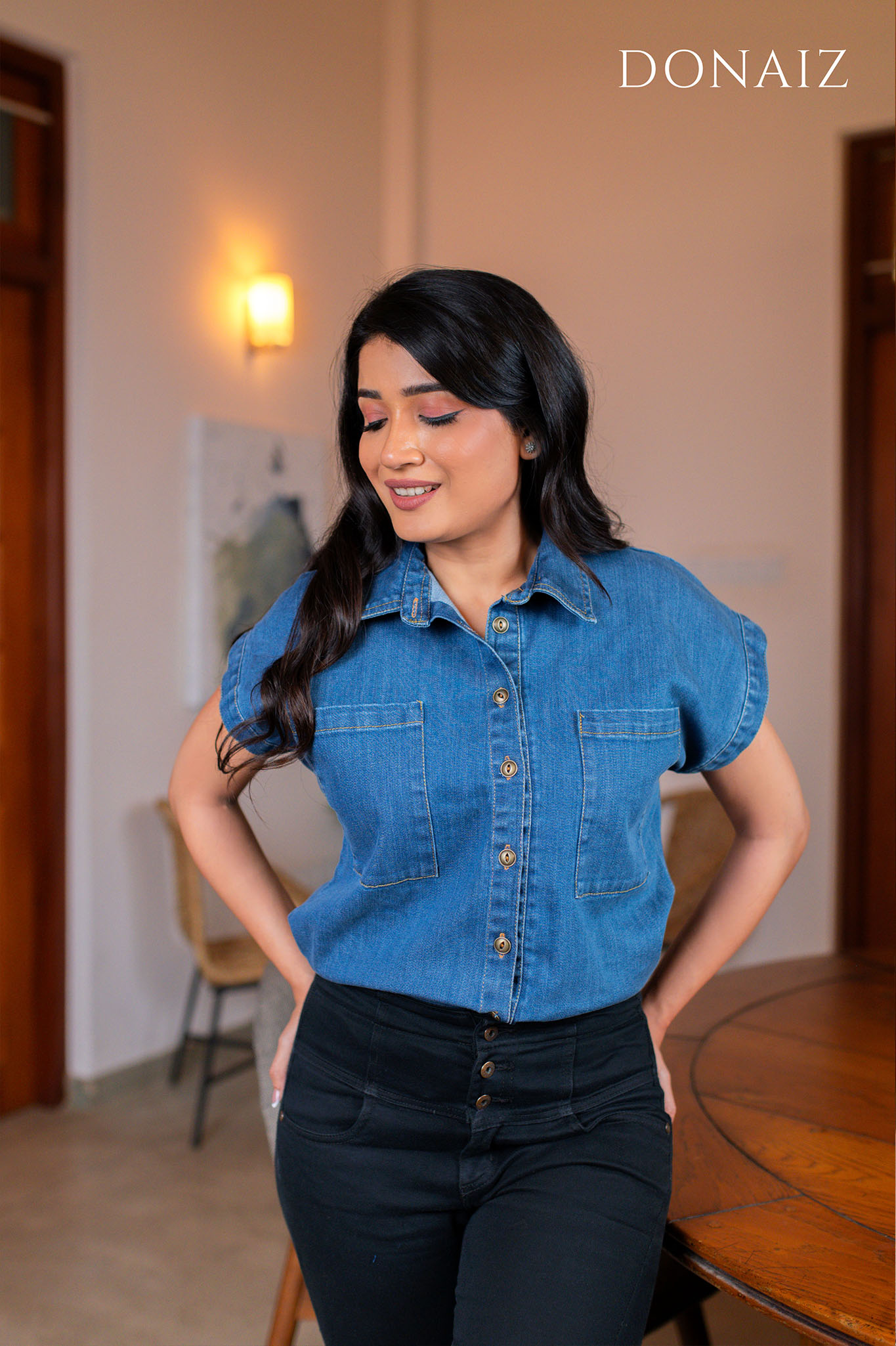 Dual Pocketed Bat Wing Sleeves Denim Top